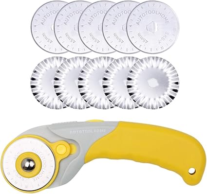Amazon Com Autotoolhome 45mm Rotary Cutter Set 5pc Pinking Rotary Blades 5pc Regular Rotary Blades Perforation Cutter Lace Leather Fabric Paper Cutting Knife Patchwork Sewing Tool